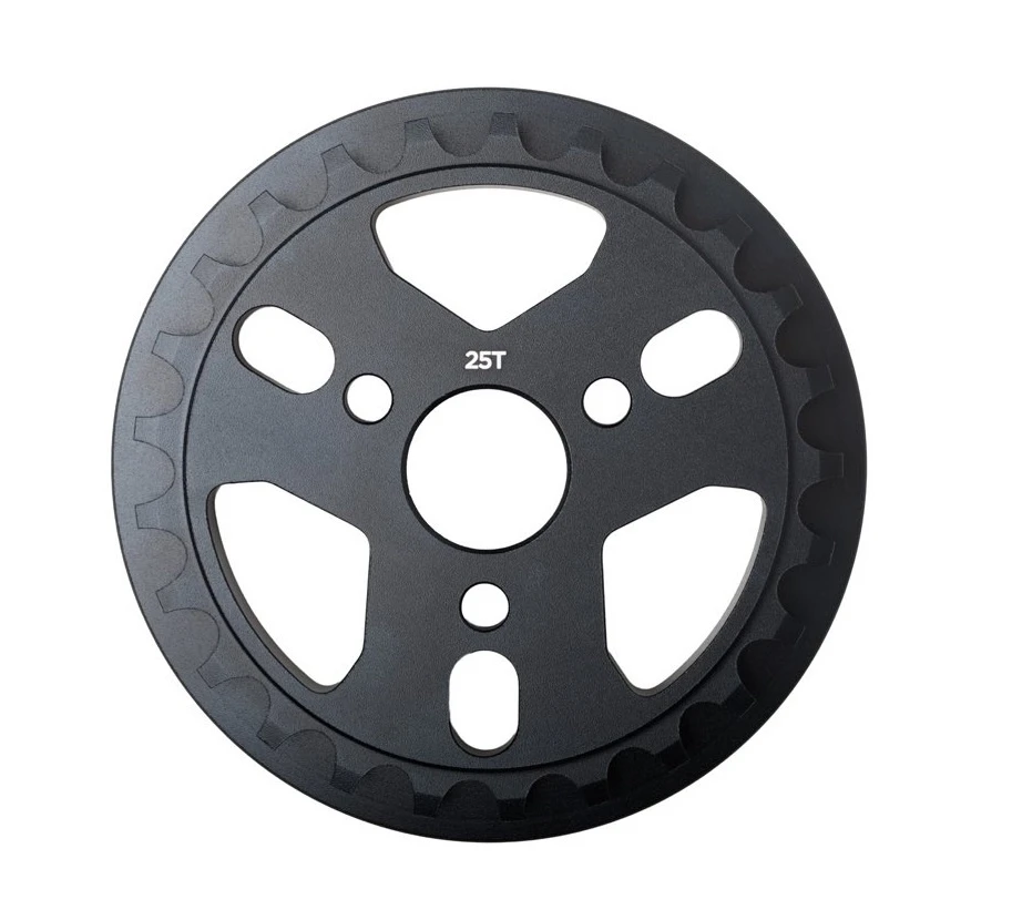 The real deal, the Reel full guard sprocket. CNC machined from super thick 7075-T6 aluminum, the Reel sprocket will hold up to sprocket chunks and crank arm grinds while protecting your chain at the same time. Extensive machining not only reduces the weight but adds plenty of crank arm clearance.