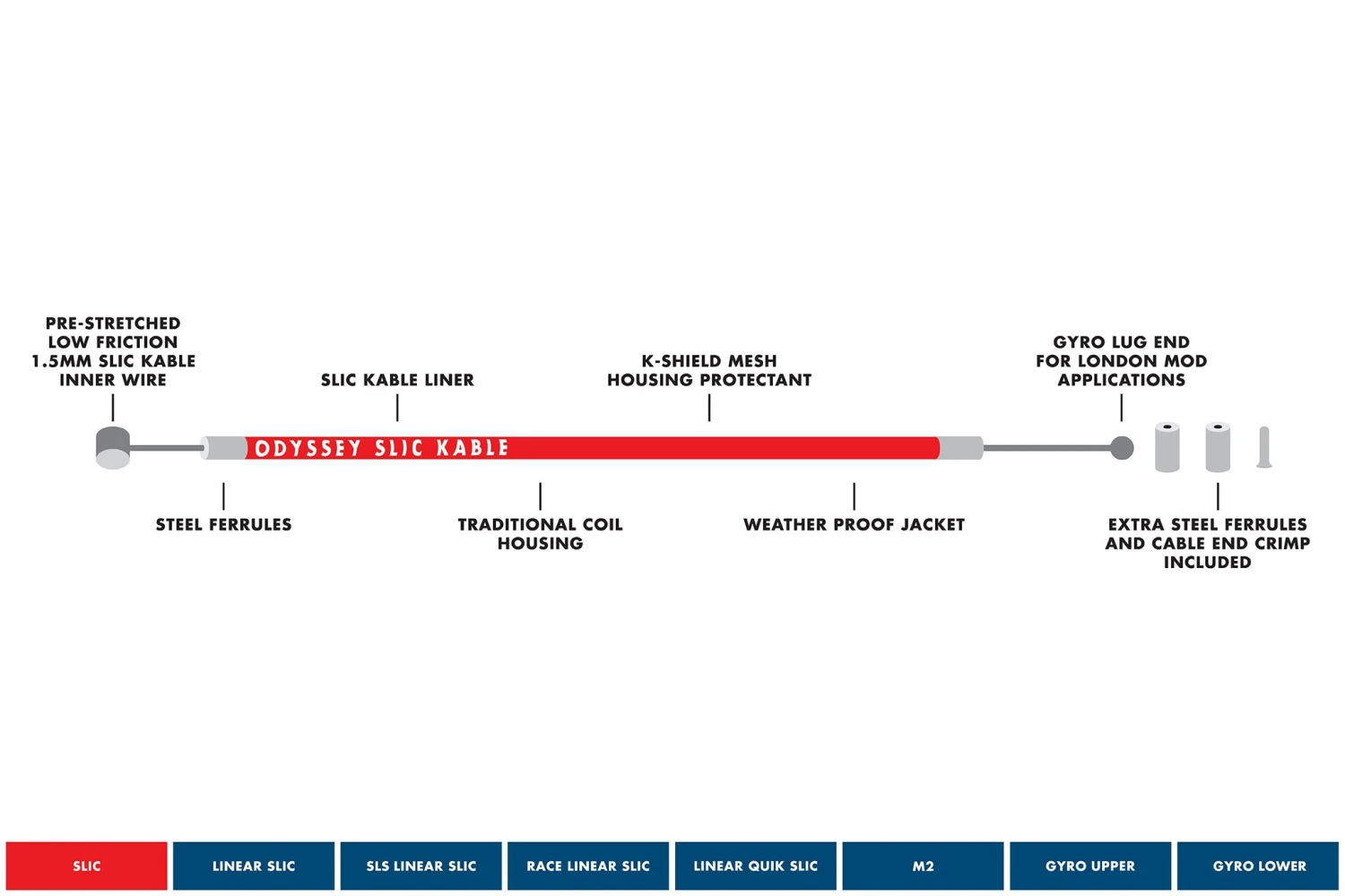 - 65” pre-stretched low-friction Slic Kable – 1.8mm