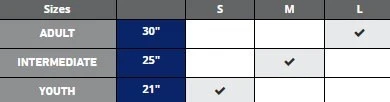 | Size | YOUTH 21", INTERMEDIATE 25", ADULT 30" |