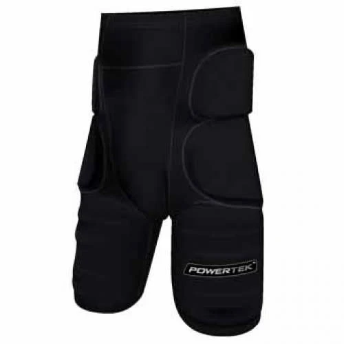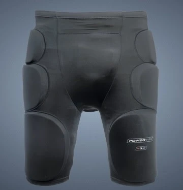 Lightweight protection. Spandex construction with plastic padding. Pelvic protection.