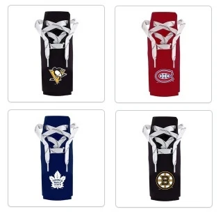 Laced Bottle Suit keeps your drinks cold and your hands warm. Fits most standard 12-ounce bottles. Makes a great gift for any hockey fan. Material: 100% Neoprene. Officially licensed.
