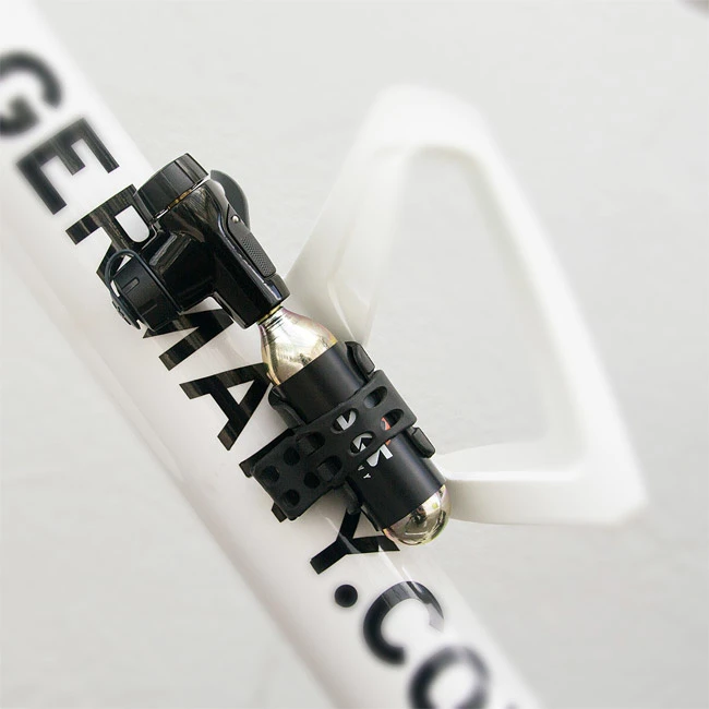 The new AIRBUSTER is the ultimate CO2 solution. The CO2 pump consists of an aluminium housing with an integrated pressure control regulator to help user release just the right amount of air. Dust protection cap keeps internals clean. Compatible with 16g and 24g threaded CO2 cartridges, SKS cartridges feature insulation protection. Airbuster includes a replacement 16g cartridge and 2-point pump holder. Incl. water bottle clip.