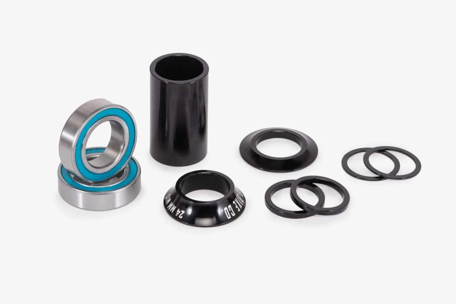 OUR COMPACT BOTTOM BRACKET USES HIGH-QUALITY PRECISION SEALED BEARINGS FOR USE WITH MID-SIZE BOTTOM BRACKET SHELLS. INCLUDES OUR OWN CNC 6061 ALLOY TUBE SPACER AND CONES WITH A SELECTION OF SPACERS TO HELP YOU DIAL IN YOUR DRIVETRAIN.