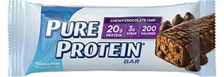 Pure Protein Chewy Chocolate Chip protein bar is loaded with 20 grams of protein. This bar is the perfect combination of high protein for lean muscle and strength along with great taste, you may actually think youβre eating a chocolate chip cookie.