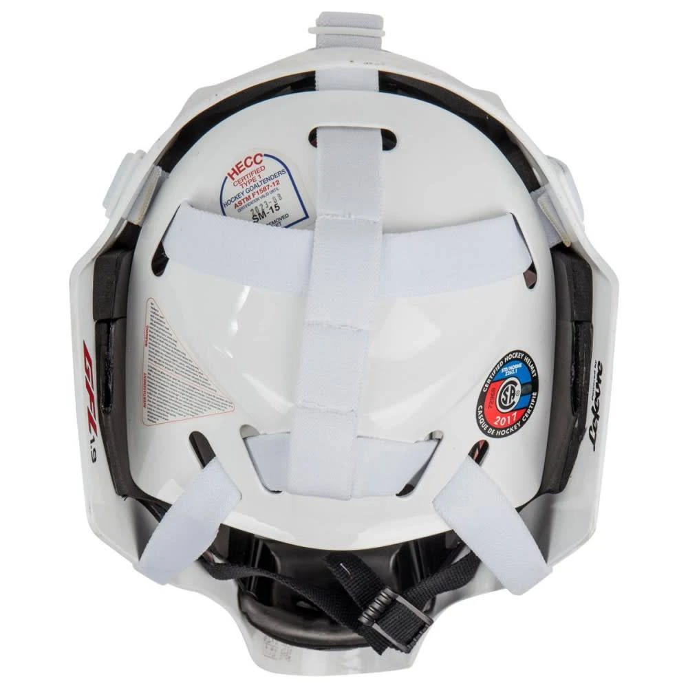 CCM continues to take the goalie mask category by storm by revamping and improving on their previous designs. The CCM 1.9 Senior Certified Straight Bar Goal mask is an NHL inspired shell which includes improvements to increase vision, in the liner and with a lighter shell.