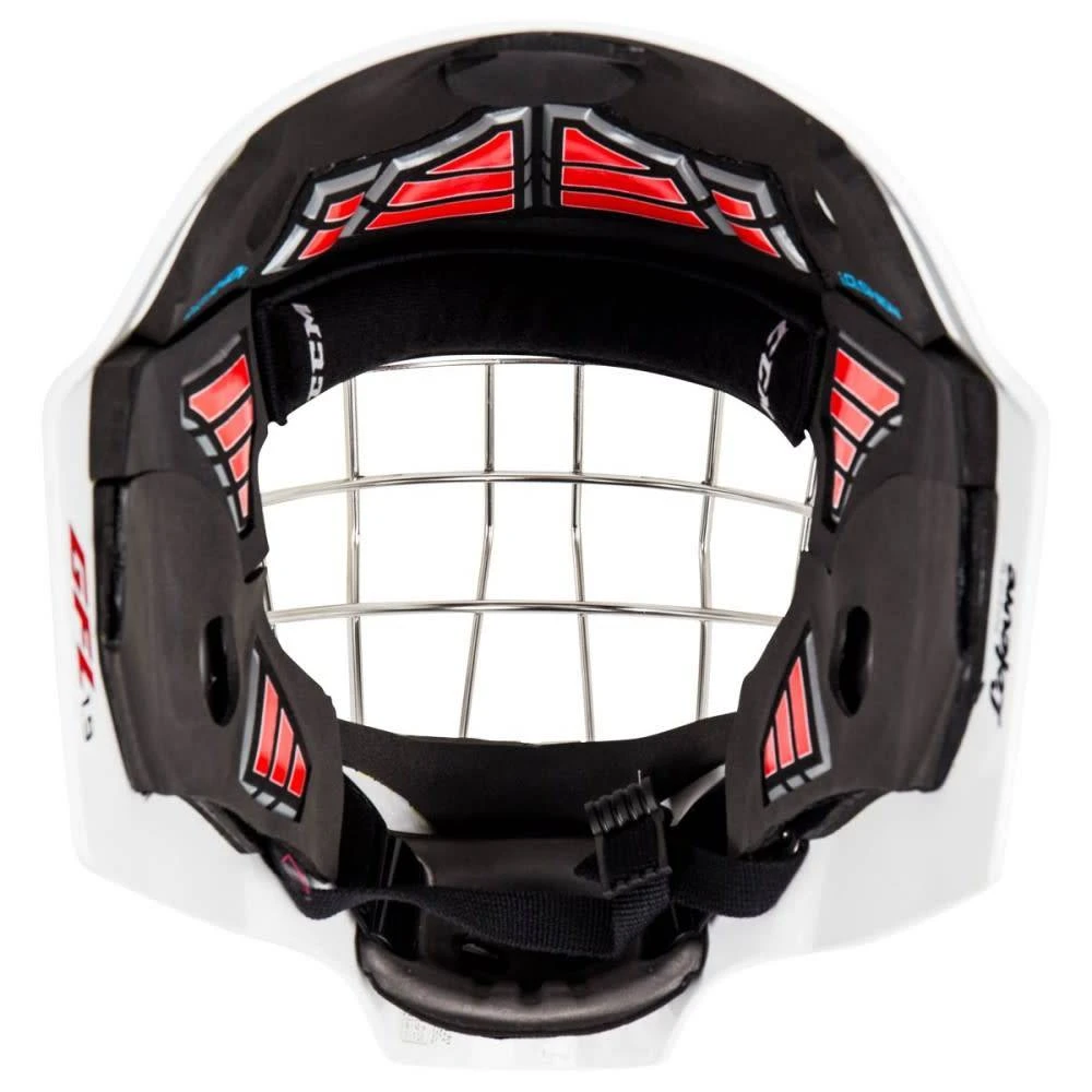 The shell of the mask is constructed of a fiberglass base to provide a stiff shell, while staying incredibly light. Inside the shell, there is a Triple Density VN liner coupled with I.Q.Shion foam in strategic reinforcements to provide the most comfortable foam system giving the goalie the best comfort and protection.