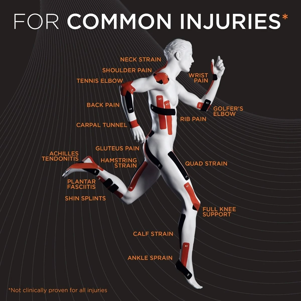 KT Tape Pro ® comes in a permanent carrying case. It’s great for the gym bag and hundreds of other useful things. Use it for everything from training gear to good luck charms. Be creative and tell us what you’re doing with it.