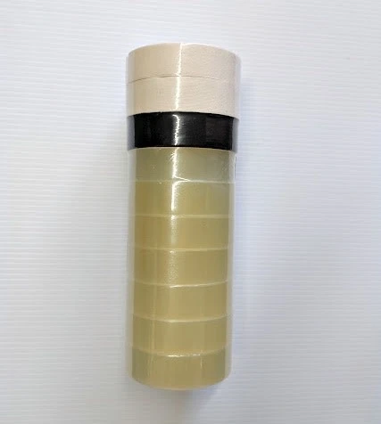 7 rolls of clear shin pad tape, 2 rolls of white stick tape, 1 roll of black stick tape.