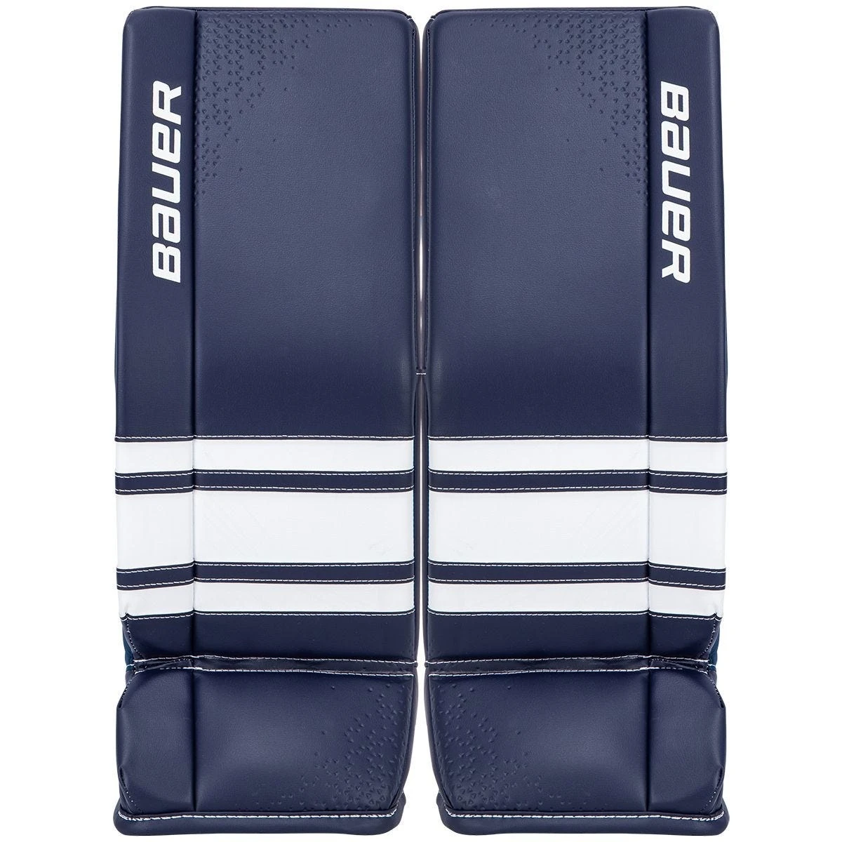 The Bauer GSX Goal Pad provides the best spec for the price point. It combines the flex of Vapor’s break above and below the knee, with the shape of Supreme. It has a TUNE FIT simple strapping system, and a butterfly assist pillow to provide extra support for the leg. Lastly, there’s a 115 degree boot flex that allows for a greater range of motion.