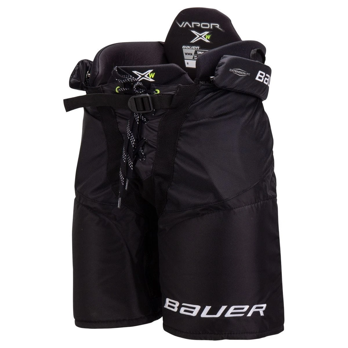The Vapor X-W Pant is built for hockey but engineered to fit the womenβs body. It provides great protection and a full range of motion. The inseam and hip areas have been adjusted for fit to contour the body for additional comfort. A PRO spec 840D Nylon shell provides increased durability and a zipper closure extension fit allows for a pant length increase of one inch. Finally, a THERMO MAX lining material will keep the player dry and comfortable.