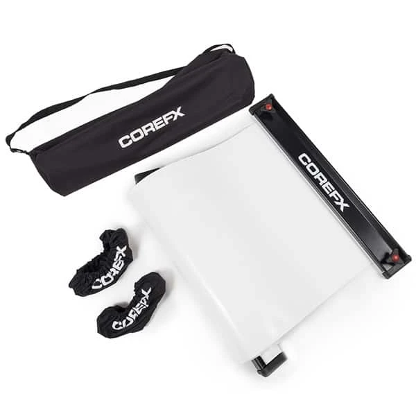 The COREFX Skill Slide is not just for dryland skating training, the COREFX Skill Slide is a slide board that can be used as a training tool in various types of training applications. The slide board uses a proprietary mat surface that has a non-slip surface on one side to hold the mat in place while the user stays in motion. The board can be adjusted in any length up to 8 feet, allowing the user to adjust and challenge their lateral training as they increase in their power and endurance. The COREFX Skill Slide rolls up easily and can be neatly stored away. Comes with booties that can be worn over running shoes.