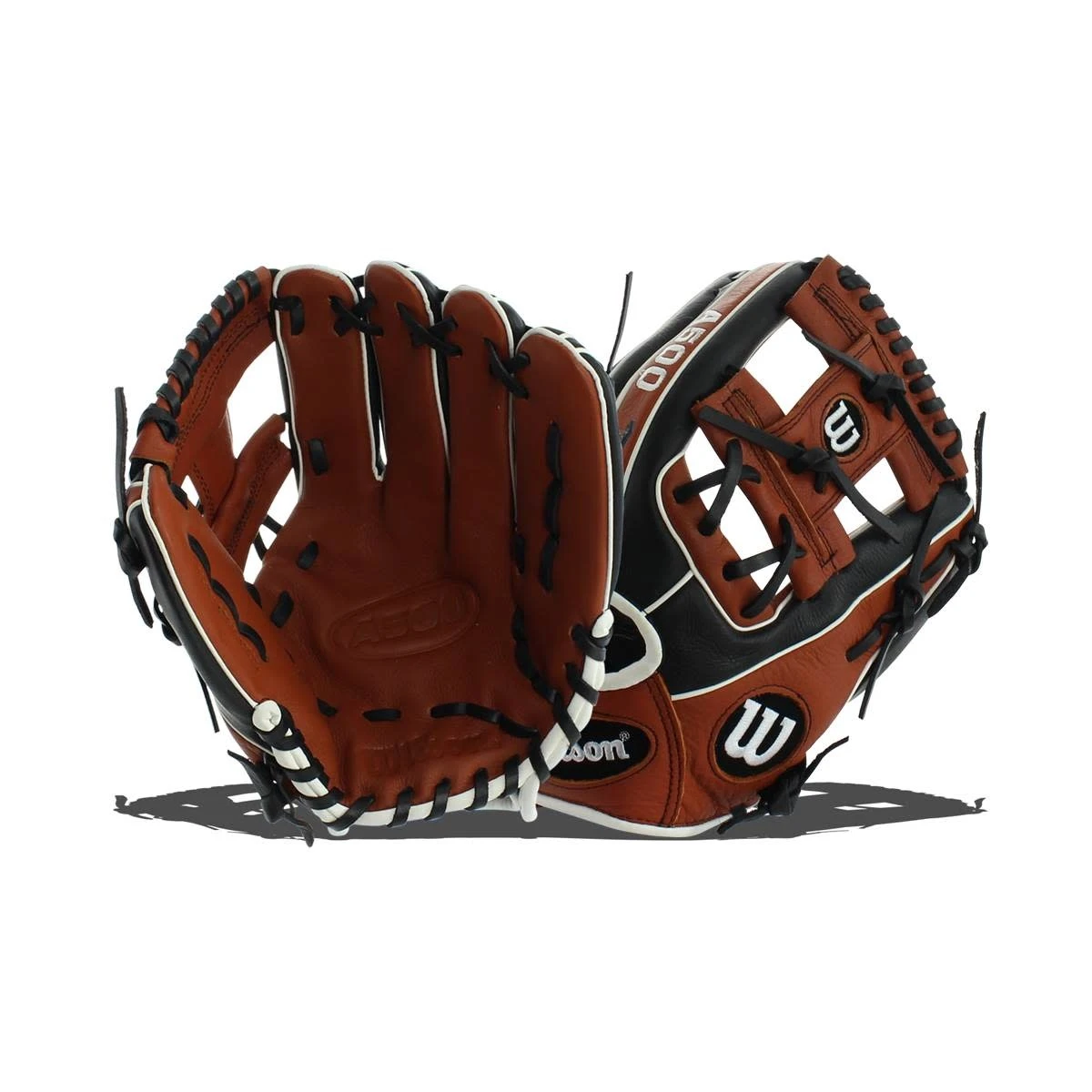 Wilson A500 baseball glove – the lightest all-leather glove on the market. The copper palm and black back are created from the finest leather, supple enough to move with your fingers with the quality construction you’ve come to expect from Wilson. This baseball glove is intended for all positions and offers that ready-to-play, lightweight feeling that you won’t find from other gloves. Double stitching along each seam ensures a sturdy product that will last for every pop fly and line drive catch. The double palm construction keeps the pocket stable and wrinkles free, giving you the full surface to make contact with each catch, important for younger players learning fundamental defensive skills. When it’s time for your new glove, choose Wilson. Wilson: Peerless in Performance! The Wilson A500 baseball glove, has an 11.5-inch opening, an H web style, real leather laces and an open back with Velcro closure. The glove is made with a rolled dual welting process, whereby thin strips of Pro Stock leather are skived thin and rolled to provide long lasting shape and a quicker break-in.