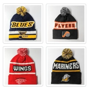 Roll cuff toques with Pom.