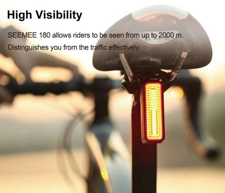 Maigcshine® SEEMEE 180 powerful bike rear light with quick mounting methods, efficient lens design and smart motion and ambient light sensors.