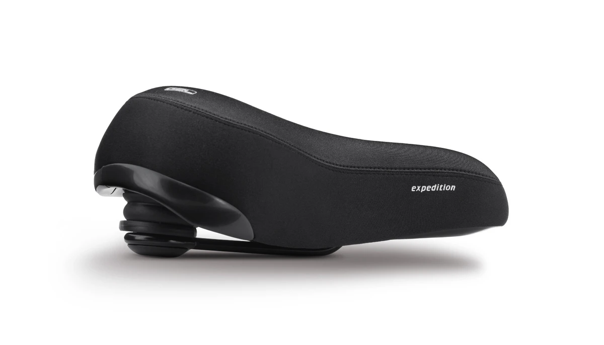 Perfect for your cruiser or urban commuter, this saddle is like a cushy couch for your backside, thanks in part to its generous padding and spring base construction.