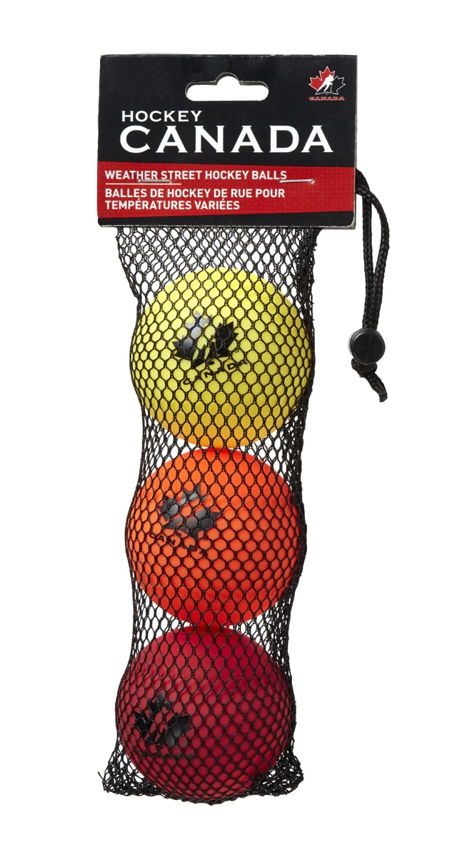 HOCKEY CANADA STREET HOCKEY BALL 65MM 50G WEATHER 3-PACK (w/ MESH BAG)
