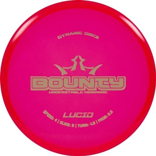 The Bounty brings a different feel to the Dynamic Discs midrange lineup. With a shallow rim and bead, the Bounty is a slightly understable midrange that acts like a slower Maverick. At shorter distances and slower speeds, the Bounty will fly very straight with good glide and minimal fade. When thrown with more speed, the Bounty will slowly move to the right without burning into the ground. Use the Bounty to shape shots in the open or in the woods, and you’ll love the control you gain!