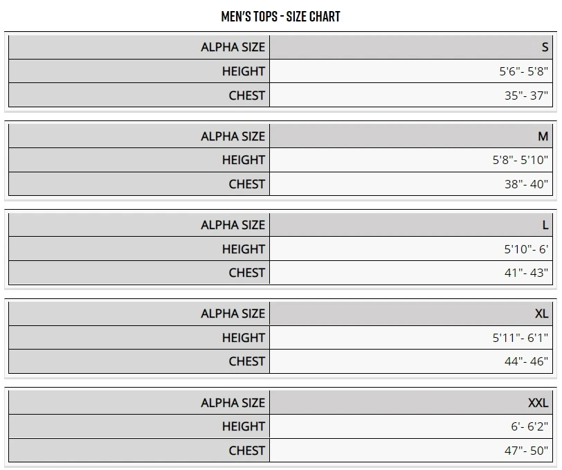 | Size | SM, MED, LRG, XL, XXL |