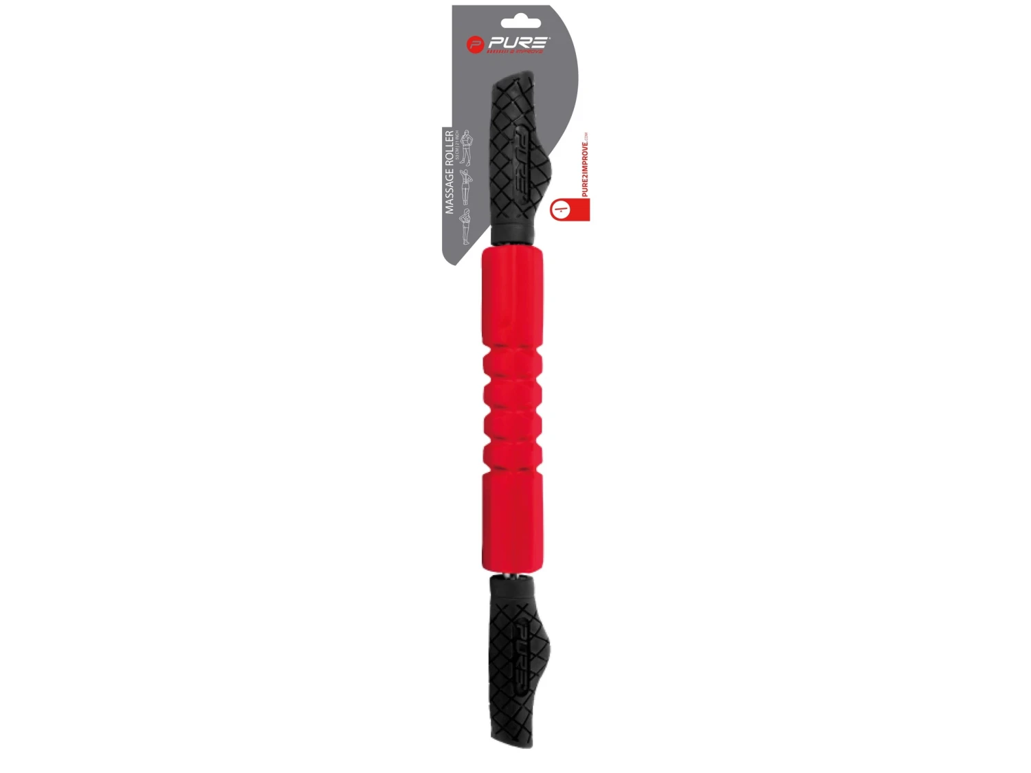 Pure 2improve massage bar, 53cm. Unlike other hard to handle bars, the massage bar gives you more massage pressure control with its mountain bike-inspired grip. Designed with a unique ball bearing system allows the bar to roll smoothly across the skin and grooves for deeper tissue manipulation, no snagging on clothing. Use to provide myofascial therapy throughout the entire body. The massage bar helps increase muscle oxygenation, add flexibility and stimulate active muscle recovery. Get the warm up, cool down and stretching you need with the massage bar.