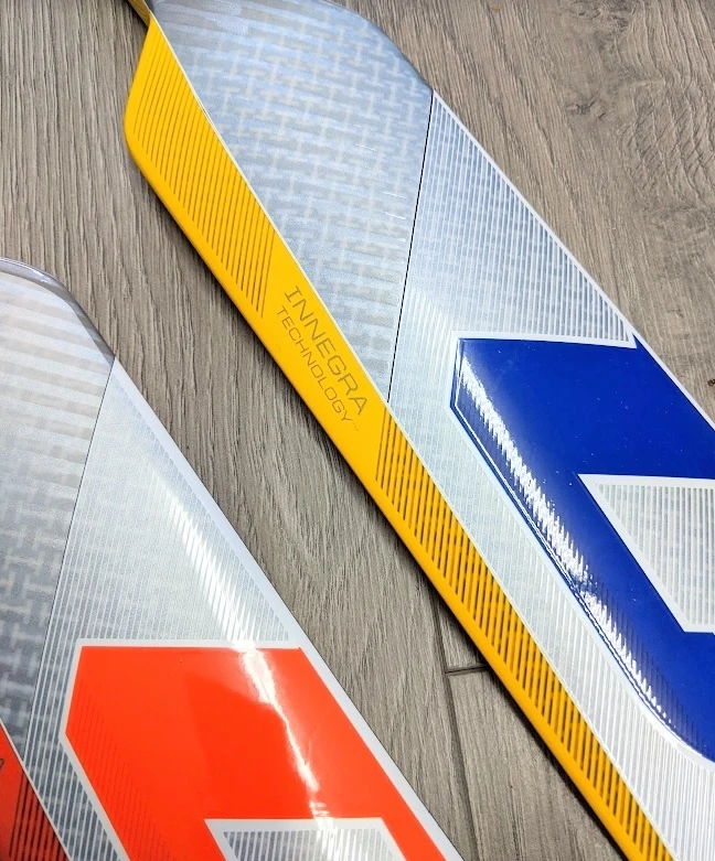 Innegra Fiber pattern can be seen throughout the stick, being more prominent on the shaft and front of the blade. The traditional Sigmatex weave pattern can be seen on the backside of the blade.Β